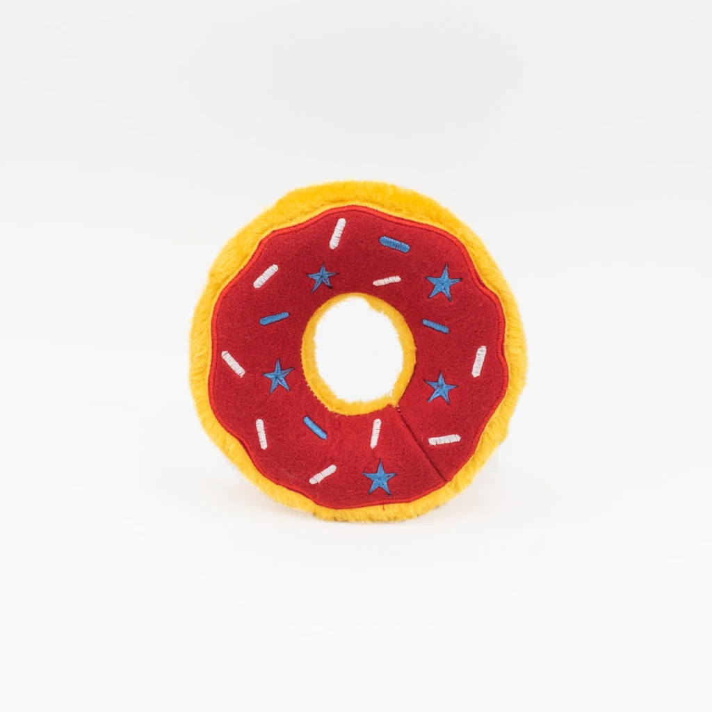 Perfect for celebrating Independence Day, the all-new Americana Donutz dog toy features colorful embroidered “sprinkles” and toppings that make them look like real delicious donuts!