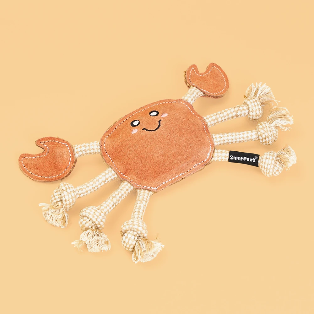 Meet the ecoZippy Suede and Rope Buddies, eco-friendly dog toys designed to look like adorable aquatic animals. Made of suede leather and a woven mix of eco-friendly jute and cotton rope, ecoZippy Suede and Rope Buddies are great toys for playing tug or fetch with your environmentally conscious pup.