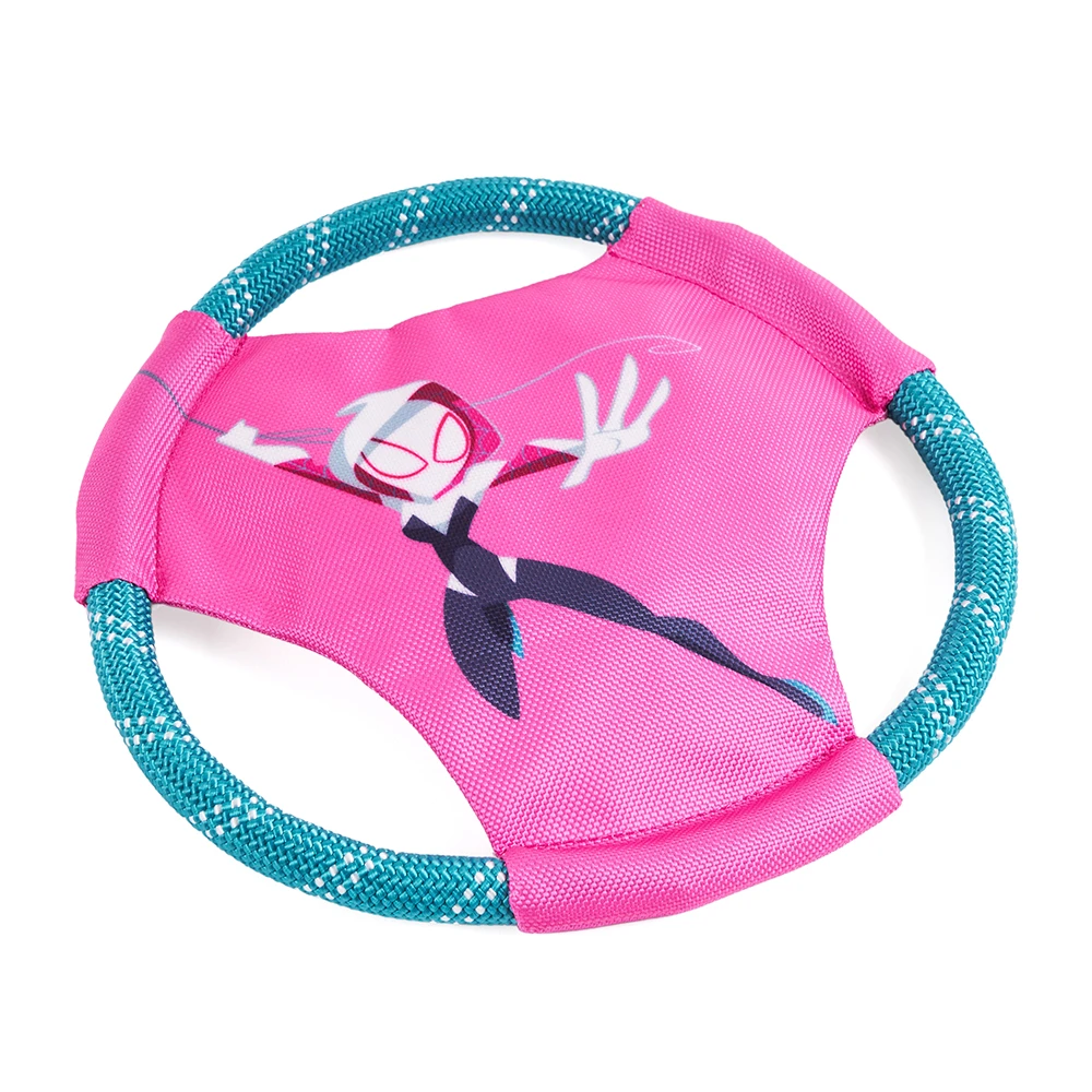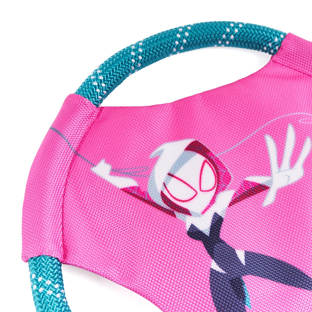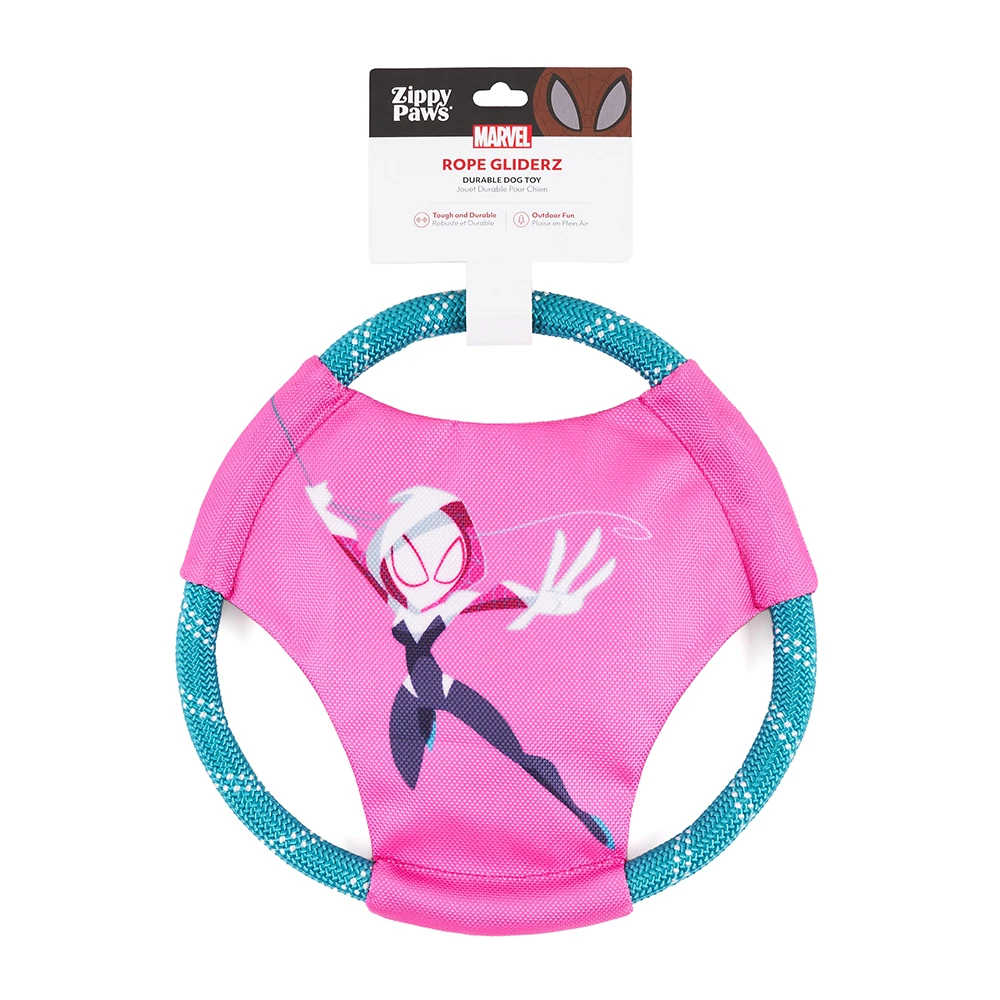 Marvel’s Ghost-Spider is ready to take flight with the Ghost-Spider Rope Gliderz toy from ZippyPaws! Featuring an image of Gwen swinging into action, and made of durable climbing rope and nylon fabric, this lightweight flyer is the perfect toy for heroic tossing and tugging fun!