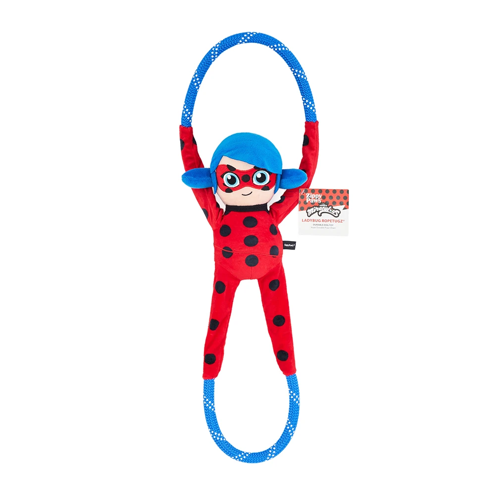 Playtime just got a bit more epic with the Miraculous RopeTugz® Ladybug toy from ZippyPaws! Ladybug, the teenage superhero from Miraculous: Tales of Ladybug and Cat Noir, comes to life as a RopeTugz® with her signature blue pigtails and iconic red & black polka dot outfit.