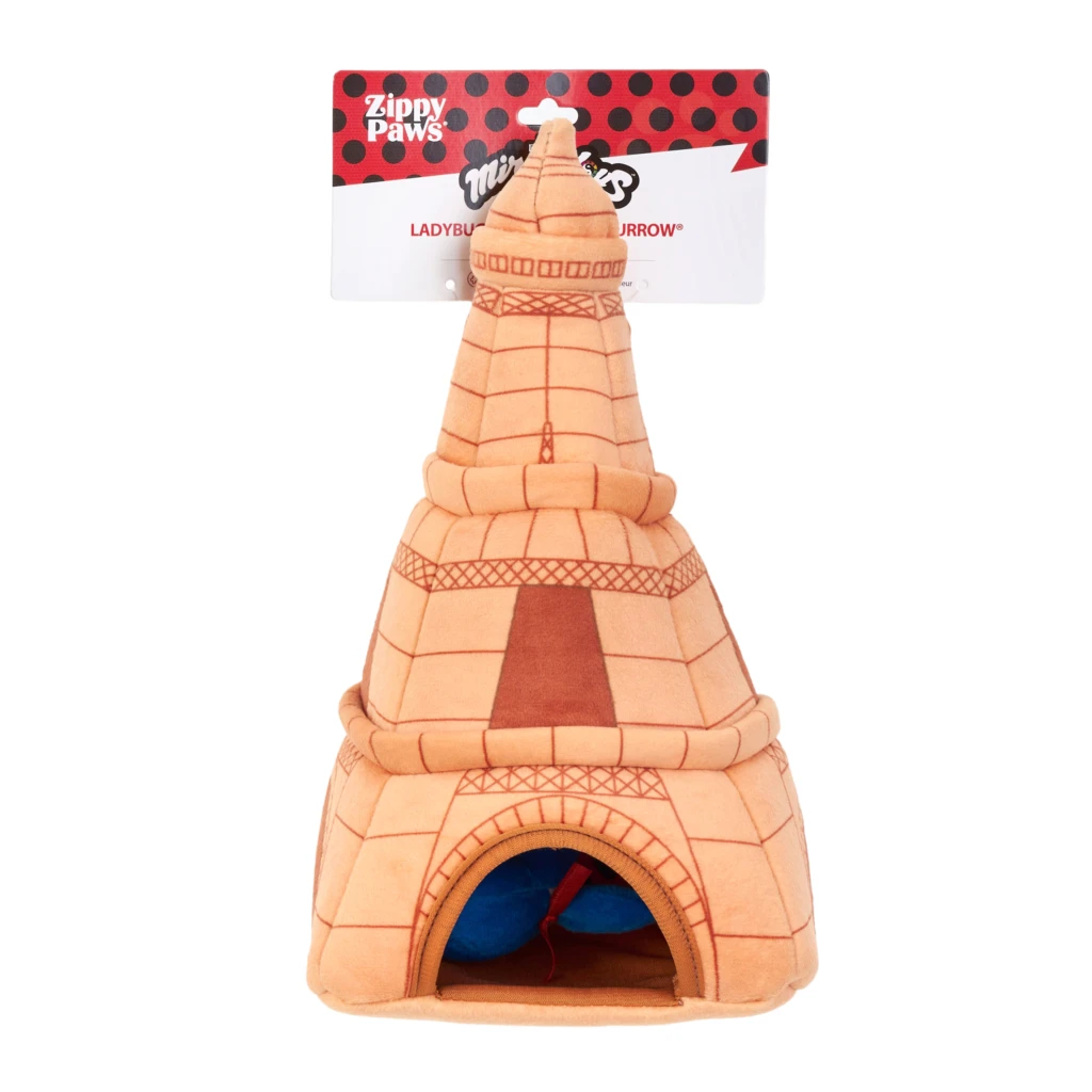 Zippy Burrow® toys are the perfect interactive toy for keeping your dog busy and engaged. Through hide-and-seek play, Zippy Burrow® toys help prevent boredom and promote mental stimulation! This interactive toy comes with 1 Eiffel Tower burrow and 2 small squeaky Miniz (Ladybug and Cat Noir).