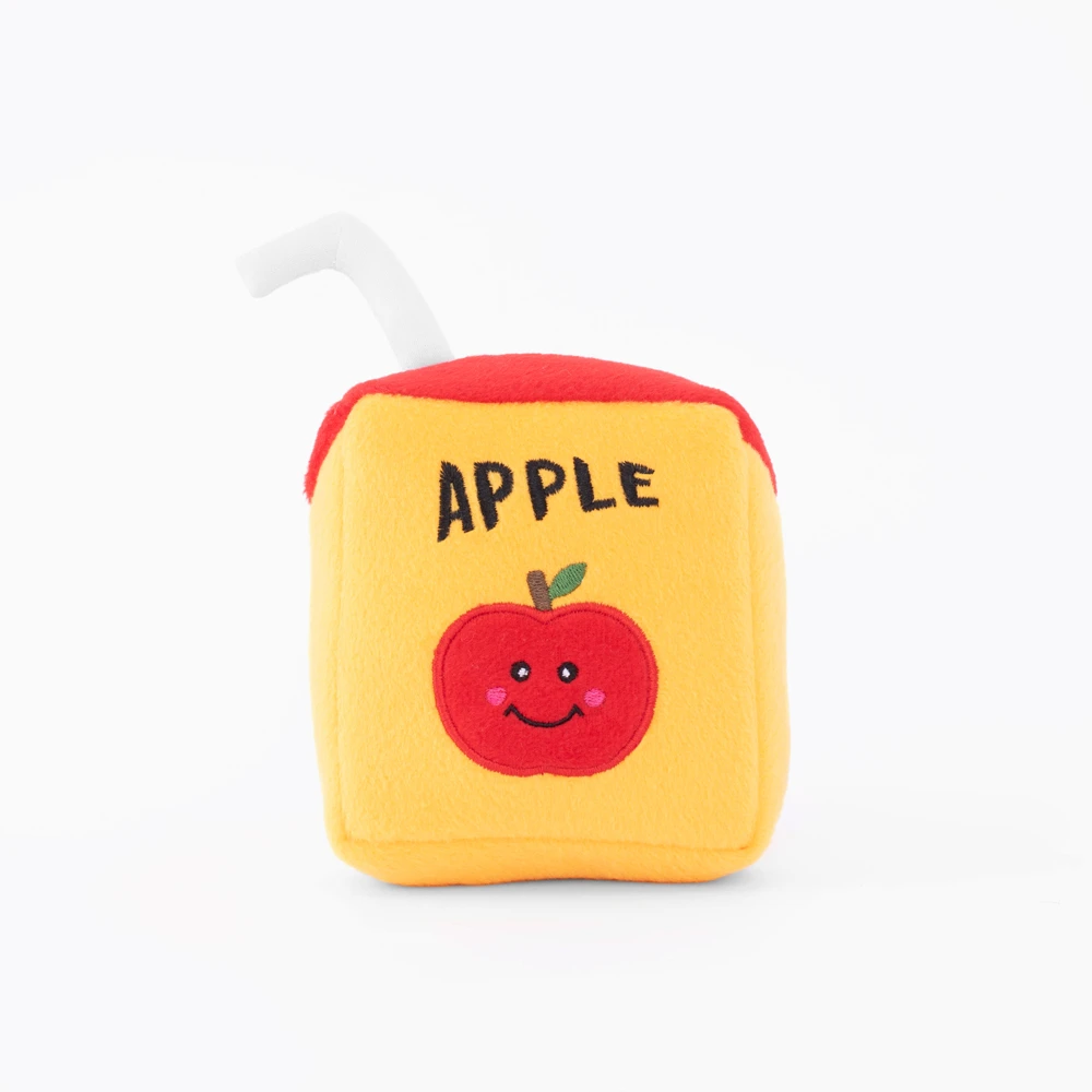 We’ve taken one of your favorite treats and transformed it into an adorable squeaky NomNomz® Juice Box plush toy for your dog!